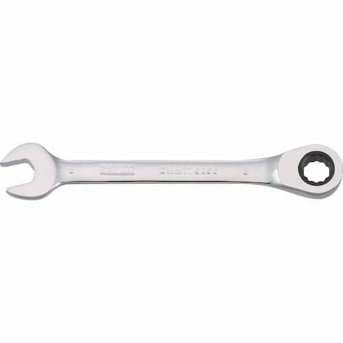- Chave de combinação de catraca de 8 mm. O padrão de marca de hash estampado na alça da chave oferece um ponto de aderência adicional