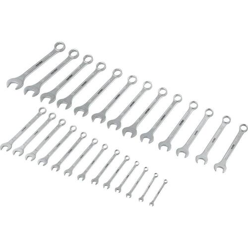 Marca: VonderConteúdo da embalagem:1 Jogo de chaves combinadass, composto por um suporte plástico com 26 peças, sendo: 6 mm, 7 mm, 8 mm, 9 mm, 10 mm, 11 mm, 12 mm, 13 mm, 14 mm, 15 mm, 16 mm, 17 mm, 18 mm, 19 mm, 20 mm, 21 mm, 22 mm, 23 mm, 24 mm, 25 mm, 26 mm, 27 mm, 28 mm, 29 mm, 30 mm e 32 mm.Destaques e diferenciais:Possui acabamento cromado fosco, proporcionando maior resistência contra oxidação/corrosão. Combina na mesma chave um lado fixa e outro estrela, possibilitando aplicações em locais de difícil acesso.Aplicações e dicas de uso:Indicado para apertar e soltar porcas e parafusos sextavados. Nunca utilizar prolongadores sobre as chaves, pois isso aumentará o torque aplicado e diminuirá a vida útil das ferramentas. Uso industrial.Detalhes TécnicosMaterial : Aço cromo vanádio Acabamento: Cromado fosco Quantidade de peças: 26 peças Capacidade: 6 mm a 32 mm Norma DIN: DIN 3113 Massa aproximada peso kg : 4.71 Garantia - E CDC :Garantia legal: 90 dias