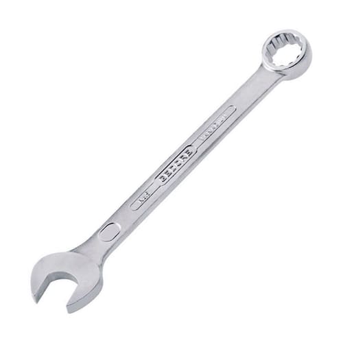 Produto com acabamento niquelado e cromado. Chave combinada com um lado boca e outro Unit Drive com as mesmas medidas. A Unit Drive proporciona uma distribuição uniforme da força aplicada na parte central do sextavado, não havendo deformação dos cantos das porcas e parafusos. Inclinação em relação ao corpo: boca 15° e Unit Drive 15°. Parede Fina.