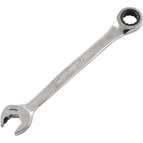 Destaques: Chave combinada Speedy com catraca, forjada em aço cromo vanádio, para maior resistência e durabilidade, com acabamento cromado e polido, em peça única para máxima robustez e resistência à corrosão. Muito mais segura, pois a camada de cromo não descasca. Com sistema Speedy, que proporciona maior conforto, melhor produtividade e exige menos esforço, já que não necessita tirar a chave do parafuso para aperto e desaperto. Seta indicativa que evita a necessidade de testar a direção do movimento. Catraca com 5 arco de giro para curvas mais apertadas e liberação rápida de 72 dentes, que proporciona maior exatidão ao movimento e resistência à chave. Com tecnologia Surface Drive, evita que a cabeça do parafuso espane, garantindo maior produtividade para o usuário e menor custo. Grandes marcações de tamanho estampado que fornecem identificação rápida. Segue norma ASME B107.100-2010 (B107.66).