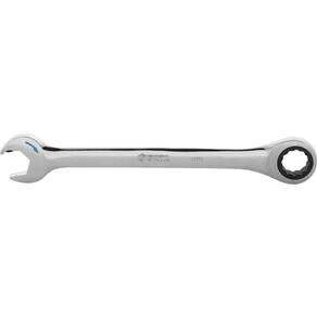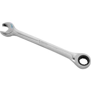 Destaques: Chave combinada Speedy com catraca, forjada em aço cromo vanádio, para maior resistência e durabilidade, com acabamento cromado e polido, em peça única para máxima robustez e resistência à corrosão. Muito mais segura, pois a camada de cromo não descasca. Com sistema Speedy, que proporciona maior conforto, melhor produtividade e exige menos esforço, já que não necessita tirar a chave do parafuso para aperto e desaperto. Seta indicativa que evita a necessidade de testar a direção do movimento. Catraca com 5 arco de giro para curvas mais apertadas e liberação rápida de 72 dentes, que proporciona maior exatidão ao movimento e resistência à chave. Com tecnologia Surface Drive, evita que a cabeça do parafuso espane, garantindo maior produtividade para o usuário e menor custo. Grandes marcações de tamanho estampado que fornecem identificação rápida. Segue norma ASME B107.100-2010 (B107.66).