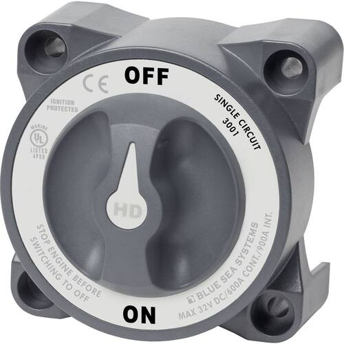 Chave de bateria Blue Sea Systems 3001 Heavy Duty com desconexão do campo do alternador, liga-desliga, bege.