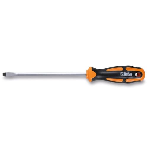 Produto: Chave de fenda 1/8 x 4" cabo bimaterial - BW 1201E Marca: Beta Descrição: A Chave de fenda 1/8 x 4" cabo bimaterial BW 1201E da Beta é sua melhor aliada para trabalhos de montagem e reparo. Projetada meticulosamente para profissionais exigentes e hobbistas que não abrem mão de qualidade e ergonomia. O punho bimaterial deste modelo foi desenvolvido para assegurar transmissão de força máxima com mínimo esforço, permitindo que você trabalhe com mais eficácia e menos desgaste. Além disso, o conforto é incomparável, proporcionando uma pegada mais segura e agradável durante o uso prolongado. Características: • Material durável e resistente à corrosão, garantindo maior vida útil do produto. • Ponta precisamente afiada para encaixe perfeito nos parafusos, minimizando o risco de danificar a cabeça do parafuso ou a própria chave. • Design ergonômico, reduzindo a fadiga e aumentando a produtividade. • Composição bimaterial do cabo, oferecendo conforto ideal mesmo em uso intensivo. Perfeita para uma variedade de aplicações, esta chave de fenda não é apenas uma ferramenta, mas um investimento na sua caixa de ferramentas. Ideal para trabalhos de precisão ou demandas do dia a dia.Especificações: Medida da ponta: 1/8" 3 mm Comprimento da haste: 4" 100 mm Cor do cabo: Laranja e pretoPunho: BimaterialComprimento total da chave: 190 mm. Marca: Não Informado