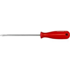 Destaques: Possui haste em aço cromo vanádio com acabamento na superfície da haste niquelado que proporciona maior resistência contra oxidação/corrosão. Cabo injetado em polipropileno vermelho, com cantos arredondados que garantem melhor ergonomia e conforto no uso. Fabricados conforme norma DIN ISO 2380-2 e ponta conforme DIN ISSO 2380-1, forma A.