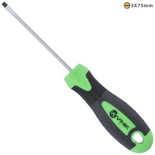 As Chaves de Fenda Vinik são excelentes companheiras para te ajudar. Com Ponta em Cromo Vanádio permite que a sua Chave não conduza energia elétrica e promove uma maior durabilidade, Haste em Aço de Alta Densidade evita que entorte com facilidade e ainda conta com Cabo Plástico de alta resistência.