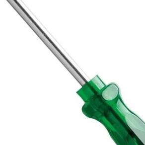 O cabo em PVC transparente na cor verde proporciona uma pegada firme e confortável, permitindo um manuseio seguro e minimizando o risco de escorregões durante o uso. Além disso, o cabo é ergonômico, desenhado para reduzir a fadiga em trabalhos prolongados, garantindo mais conforto e segurança ao operador. A ponta da chave é fosfatizada e magnetizada, facilitando o encaixe em parafusos e mantendo-os fixos para uma aplicação precisa, evitando quedas ou deslizes que podem comprometer a qualidade do serviço.