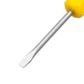 Produzida em aço cromo vanádio, proporcionando maior resistência e durabilidade. Possui acabamento niquelado que confere maior resistência contra oxidação/corrosão. Conta com ponta magnetizada que facilita tanto a colocação quanto a retirada de parafusos em locais de difícil acesso. Indicada para fixar e soltar parafusos com fenda simples.