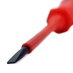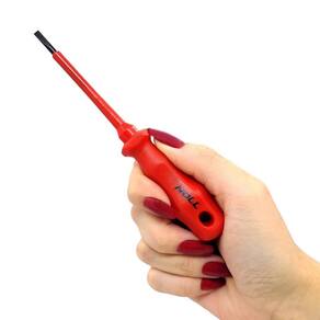 A Chave de Fenda Isolada 1000v VDE 3,5X75mm 601,0002 - Noll, é uma ferramenta desenvolvida especialmente para profissionais que lidam com eletricidade em seu trabalho diário. Esta chave de fenda oferece a mais alta proteção elétrica, garantindo a segurança do usuário em trabalhos de alta voltagem. A qualidade dessa chave é certificada pelo VDE, um dos padrões mais rigorosos de isolação para ferramentas manuais.