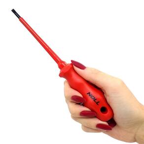 A Chave de Fenda Isolada 1000v VDE 4x100mm 601,0003 - Noll, é uma ferramenta desenvolvida especialmente para profissionais que lidam com eletricidade em seu trabalho diário. Esta chave de fenda oferece a mais alta proteção elétrica, garantindo a segurança do usuário em trabalhos de alta voltagem. A qualidade dessa chave é certificada pelo VDE, um dos padrões mais rigorosos de isolação para ferramentas manuais.