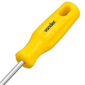 Produzida em aço cromo vanádio, proporcionando maior resistência e durabilidade. Possui acabamento niquelado que confere maior resistência contra oxidação/corrosão. Conta com ponta magnetizada que facilita tanto a colocação quanto a retirada de parafusos em locais de difícil acesso. Indicada para fixar e soltar parafusos com fenda simples.
