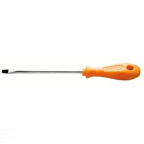 Seja em manutenções industriais ou automotivas, apertar ou afrouxar parafusos se torna mais fácil com a ajuda da Chave Twister da Tramontina PRO. Esta chave de fenda proporciona maior conforto e firmeza na utilização, devido as suas saliências no cabo. Ideal para trabalhos em locais de difícil acesso, aschaves estão disponíveis em ponta chata e cruzada, nos modelos tradicional e toco. É mais uma inovação que compõe a linha de ferramentas industriais da Tramontina PRO. Agilidade e eficiência: características de quem é PRO. Orientações Haste em aço cromo vanádio temperada.Acabamento cromado.Ponta fosfatizada e magnetizada.Cabo injetado.DIN ISO 2380.Ponta chata.As hastes das chaves de fenda são testadas em máquina de ensaio específica, para verificar o perfeito balanço entre resistência mecânica e dureza.Os dimensionais das pontas são verificados com gabaritos-padrão calibrados e certificados, e a qualidade do fosfato é inspecionada ao microscópio.Apertar ou afrouxar parafusos de fenda simples.As ferramentas são produzidas e testadas conforme normas específicas. Características Gerais EAN13 7891114069631 DUN14 17891114069638 NCM 8205.40.00 Peso Líquido 0,0375 kg. Peso Bruto 0,0420 kg. Metragem 0,000150 m³. Dimensões Embalagem (Compr. X Larg. X Alt.) 240x 25x 25 mm. Dimensões Produto (Compr. X Larg. X Alt.) 241x 25x 25 mm. Cor 1 EF8134 Hexa Dimensão Extra A 3,0 mm. Dimensão Extra B 241,0 mm. Dimensão Extra C 25,0 mm. Dimensão Extra D 150,0 mm. Dimensão Extra E 0,5 mm. Observações Use óculos, luvas e outros equipamentos de proteção individual (EPIs) de acordo com a tarefa a ser executada. Utilize chaves de fenda isoladas, identificadas pela marcação 1.000 V, quando for necessário trabalhar em locais com corrente elétrica. Importante: nestes casos, inspecione a integridade da isolação elétrica, e, se aparecerem trincas na isolação, suspenda o uso imediatamente. Utilize chaves com ponta adequada para cada tipo de fenda, para realizar a tarefa de forma mais rápida e segura. Respeite o torque estabelecido por norma para cada bitola. Não utilize as chaves de fenda como formão ou alavanca. Não altere as dimensões originais da ponta para obter outro perfil. Armazene em local limpo e seco.