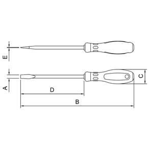 Seja em manutenções industriais ou automotivas, apertar ou afrouxar parafusos se torna mais fácil com a ajuda das Chave Ultragrip Plus da Tramontina PRO. Seu cabo emborrachado proporciona maior conforto e firmeza na utilização. Estão disponíveis com ponta chata e cruzada, nos modelos tradicional e toco. Quem é PRO usa. Orientações Haste em aço cromo vanádio temperada. Acabamento cromado.Ponta fosfatizada e magnetizada.Cabo com dupla injeção em PP e borracha.DIN ISO 2380.Ponta chata.As hastes das chaves de fenda são testadas em máquina de ensaio específica, para verificar o perfeito balanço entre resistência mecânica e dureza.Os dimensionais das pontas são verificados com gabaritos-padrão calibrados e certificados, e a qualidade do fosfato é inspecionada ao microscópio.Apertar ou afrouxar parafusos de fenda simples.As ferramentas são produzidas e testadas conforme normas específicas. Características Gerais EAN13 7891114151923 DUN14 17891114151920 NCM 8205.40.00 Peso Líquido 0,0960 kg. Peso Bruto 0,1000 kg. Metragem 0,000653 m³. Dimensões Embalagem (Compr. X Larg. X Alt.) 290x 50x 45 mm. Dimensões Produto (Compr. X Larg. X Alt.) 242x 34x 34 mm. Dimensão Extra A 6,0 mm. Dimensão Extra B 242,0 mm. Dimensão Extra C 34,5 mm. Dimensão Extra D 125,0 mm. Dimensão Extra E 1,2 mm. Observações Use óculos, luvas e outros equipamentos de proteção individual (EPIs) de acordo com a tarefa a ser executada. Utilize chaves de fenda isoladas, identificadas pela marcação 1.000 V, quando for necessário trabalhar em locais com corrente elétrica. Importante: nestes casos, inspecione a integridade da isolação elétrica, e, se aparecerem trincas na isolação, suspenda o uso imediatamente. Utilize chaves com ponta adequada para cada tipo de fenda, para realizar a tarefa de forma mais rápida e segura. Respeite o torque estabelecido por norma para cada bitola. Não utilize as chaves de fenda como formão ou alavanca. Não altere as dimensões originais da ponta para obter outro perfil. Armazene em local limpo e seco.