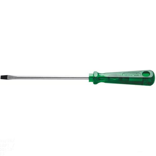 Seja em manutenções industriais ou automotivas, apertar ou afrouxar parafusos se torna mais fácil com a ajuda das Chaves Easygrip da Tramontina PRO. Seu cabo com formato sextavado proporciona maior conforto e agilidade na utilização. Estão disponíveis com ponta chata, cruzada, trafix, trafix PZ e canhão nos modelos tradicional, toco e com isolação. Escolha o tamanho ideal para o seu trabalho e mãos à obra. Orientações Haste em aço cromo vanádio temperada. Acabamento cromado.Ponta fosfatizada e magnetizada.Cabo em PVC verde transparente.DIN ISO 2380.Ponta chata.As hastes das chaves de fenda são testadas em máquina de ensaio específica, para verificar o perfeito balanço entre resistência mecânica e dureza.Os dimensionais das pontas são verificados com gabaritos-padrão calibrados e certificados, e a qualidade do fosfato é inspecionada ao microscópio.Apertar ou afrouxar parafusos de fenda simples.As ferramentas são produzidas e testadas conforme normas específicas. Características Gerais EAN13 7891114023091 DUN14 17891114023098 NCM 8205.40.00 Peso Líquido 0,1180 kg. Peso Bruto 0,1220 kg. Metragem 0,000274 m³. Dimensões Embalagem (Compr. X Larg. X Alt.) 365x 30x 25 mm. Dimensões Produto (Compr. X Larg. X Alt.) 359x 29x 29 mm. Cor 1 3C775F Hexa Dimensão Extra A 6,0 mm. Dimensão Extra B 359,0 mm. Dimensão Extra C 28,7 mm. Dimensão Extra D 250,0 mm. Dimensão Extra E 1,2 mm. Observações Use óculos, luvas e outros equipamentos de proteção individual (EPIs) de acordo com a tarefa a ser executada. Utilize chaves de fenda isoladas, identificadas pela marcação 1.000 V, quando for necessário trabalhar em locais com corrente elétrica. Importante: nestes casos, inspecione a integridade da isolação elétrica, e, se aparecerem trincas na isolação, suspenda o uso imediatamente. Utilize chaves com ponta adequada para cada tipo de fenda, para realizar a tarefa de forma mais rápida e segura. Respeite o torque estabelecido por norma para cada bitola. Não utilize as chaves de fenda como formão ou alavanca. Não altere as dimensões originais da ponta para obter outro perfil. Armazene em local limpo e seco.