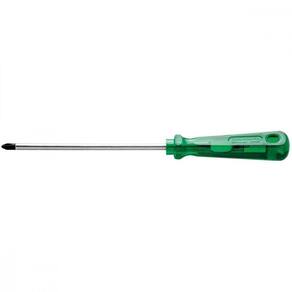 Haste em aço cromo vanádio temperada.Acabamento cromado.Ponta fosfatizada e magnetizada.Cabo em PVC verde transparente.DIN ISO 8764. Ponta cruzada.As hastes das chaves de fenda são testadas em máquina de ensaio específica, para verificar o perfeito balanço entre resistência mecânica e dureza.Os dimensionais das pontas são verificados com gabaritos-padrão calibrados e certificados, e a qualidade do fosfato é inspecionada ao microscópio.Apertar ou afrouxar parafusos de fenda cruzada.As ferramentas são produzidas e testadas conforme normas específicas. Seja em manutenções industriais ou automotivas, apertar ou afrouxar parafusos se torna mais fácil com a ajuda das Chaves Easygrip da Tramontina PRO. Seu cabo com formato sextavado proporciona maior conforto e agilidade na utilização. Estão disponíveis com ponta chata, cruzada, trafix, trafix PZ e canhão nos modelos tradicional, toco e com isolação. Escolha o tamanho ideal para o seu trabalho e mãos à obra.