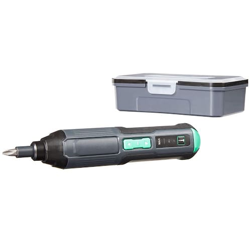 Amazon Basics Chave de fenda SKIL 4V sem fio com conjunto de brocas de 34 peças, estojo de transporte e cabo USB (anteriormente marca Denali) - Chave de fenda recarregável sem fio com velocidades de até 300 rpm; ótima alternativa para chaves de fenda de ferramentas manuais - Inclui uma chave de fenda elétrica de 4 V, bateria de íon de lítio embutida de 2000 mAh, cabo de carregamento USB-C, 34 bits e um estojo de transporte - 3 configurações de torque para discar o torque para aplicações específicas; até 56 cm libras de torque - Cabo de carregamento USB-A para USB-C para fácil recarga (não suporta USB-C para USB-C) - Trocas rápidas de broca com pinça de 0,67 cm - A luz LED ilumina a superfície de trabalho em espaços escuros - Corpo compacto e fino para locais difíceis de alcançar - Este produto é coberto pela garantia de 5 anos da ferramenta elétrica - Anteriormente marca Denali, agora Amazon Basics