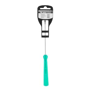 Especificações Forma da alçareta: Reta Material da haste: Aço CrV Tipo de ponta: SL3 Comprimento da haste: 100 mm Largura da ranhura: 1/8 Dureza da haste: 52 HRC Itens Inclusos Chave de Fenda SL3 100mm CrV Cabo Verde MTX 1140255 Cartão de suspensão Perguntas Frequentes (FAQ) Pergunta: Qual o material da haste da chave de fenda?