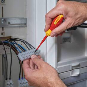 As marcações visíveis no corpo da chave permitem identificação rápida do perfil e tamanho da ferramenta, otimizando a organização e produtividade. Ideal para eletricistas, técnicos de manutenção e profissionais industriais que exigem segurança, desempenho e confiabilidade em instalações elétricas.
