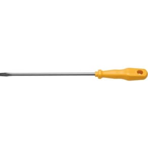 - Marca: Tramontina; - Haste em aço especial temperado; - Acabamento niquelado; - Ponta chata; - As hastes as chaves de fenda são testadas em máquinas de ensaio específicas, para verificar o perfeito balanço entre resistência mecânica e dureza; - Cabos injetados com material de alta resistência; - Os dimensionais das pontas são verificados com gabaritos-padrão, calibrados e certificados; - As ferramentas são produzidas e testadas conforme normas específicas; - Peso: 80 gr; - Garantia: Garantia total contra vícios ou defeitos de fabricação.