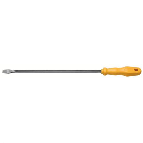 Trabalhar com reformas, sejam elas pequenas ou de grande porte, profissionais ou caseiras, exigem que você se atente para todos os detalhes. E quando se trata de ferramentas você conta com a Chave de Fenda Tramontina Yellow com Ponta Chata 3/8x12 Polegadas. Uma ferramenta que proporciona segurança, firmeza e praticidade para apertar ou retirar parafusos. Com corpo em aço especial temperado com acabamento niquelado, é uma ferramenta que garante alta resistência e durabilidade. Sua empunhadura é em polipropileno injetado, que vai lhe proporcionar um manuseio firme e confortável. Uma ferramenta para quem preza por alto desempenho! Orientações Haste em aço especial temperado. Acabamento niquelado. Ponta chata. As hastes as chaves de fenda são testadas em máquinas de ensaio específicas, para verificar o perfeito balanço entre resistência mecânica e dureza. Cabos injetados com material de alta resistência. Os dimensionais das pontas são verificados com gabaritos-padrão, calibrados e certificados. As ferramentas são produzidas e testadas conforme normas específicas. Características Gerais EAN13 7891114013955 DUN14 17891114013952 NCM 8205.40.00 Peso Líquido 0,2100 kg. Peso Bruto 0,2100 kg. Metragem 0,000436 m³. Dimensões Embalagem (Compr. X Larg. X Alt.) 415x 35x 30 mm. Dimensões Produto (Compr. X Larg. X Alt.) 420x 31x 31 mm. Cor 1 FFD200 Hexa Dimensão Extra A 10,0 mm. Dimensão Extra B 420,0 mm. Dimensão Extra C 31,5 mm. Dimensão Extra D 300,0 mm. Dimensão Extra E 1,5 mm. Observações Use óculos, luvas e outros equipamentos de proteção de acordo com a tarefa a ser executada. Utilize chaves de fenda isoladas, identificadas pela marcação 1.000 V, quando for necessário trabalhar em locais com corrente elétrica. Importante: nestes casos, inspecione a integridade da isolação elétrica, e, se aparecerem trincas na isolação, suspenda o uso imediatamente. Utilize chaves com ponta adequada para cada tipo de fenda, para realizar a tarefa de forma mais rápida e segura. Respeite o torque estabelecido por norma para cada bitola. Não utilize as chaves de fenda como formão ou alavanca. Não altere as dimensões originais da ponta para obter outro perfil. Armazene em local limpo e seco.