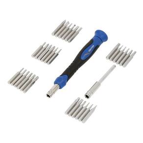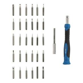 Características do jogos de bits de precisão e chave suporte 32 peças dexter Esse jogo de bits conta com 32 peças feitas em aço cromo-vanádio. As peças oferecem alta resistência, maior durabilidade e segurança de uso.