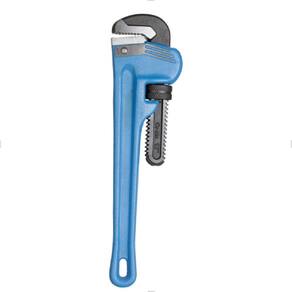 Cabeça e castanha em aço-liga de alta resistência mecânica, cabo em ferro fundido maleável. Cabo com acabamento em pintura eletrostática na cor azul padrão Gedore, demais componentes escurecidos. Mordentes com tratamento térmico especial. Possui abertura do mordente regulável e de fácil manuseio. Modelo robusto, indicada para utilização em montagens e desmontagens de tubulações em geral.