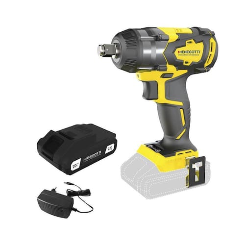 Chave de impacto a bateria menegotti mci 21 20v + bat 2,0ah Chave de impacto a bateria 20v intercambiável mci-21 com motor brushless menegotti + 01 bateria 2,0ah e carregador