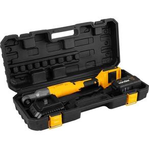 Conteúdo da embalagem: 1 Chave de impacto angular a bateria, acompanha: 1 bateria 18 V - 4 Ah, 1 base de carregamento da bateria 100 V~ - 240 V~ - Bivolt automático e 1 maleta plástica.