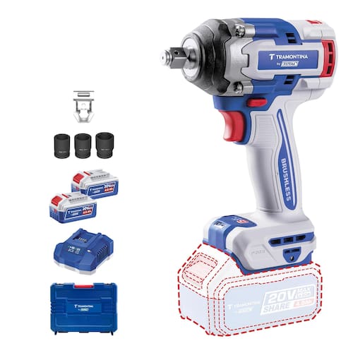 A Chave de Impacto 1/2" (12,7 mm) 20V 500 N.m Brushless by TOTAL daTramontina é a escolha definitiva para profissionais que buscam força elevada, robustez e total independência. Este kit completo foi projetado para aplicações que exigem alto torque em apertos e desapertos, garantindo máxima produtividade sem a limitação de fios ou mangueiras.