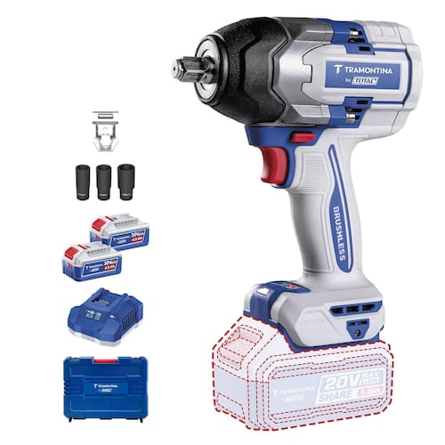 A Chave de Impacto 1/2" (12,7 mm) 20V 850 N.m Brushless by TOTAL da Tramontinaé a ferramenta definitiva para quem busca força extrema aliada à máxima autonomia. Desenvolvida para aplicações automotivas, industriais e montagens pesadas, este kit completo entrega o desempenho necessário para os desafios mais rigorosos da jornada profissional.