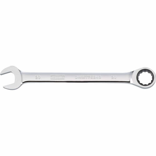 - Chave de combinação de catraca de 20 mm. O padrão de marca de hash estampado na alça da chave oferece um ponto de aderência adicional