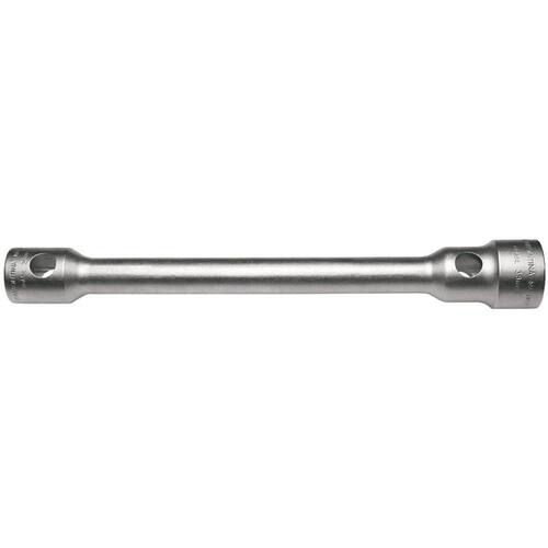 Orientações Corpo forjado em aço especial e temperado.Acabamento cromado.Abertura das bocas calibradas.Extremidade de 35 mm com formato sextavado. A outra extremidade de 17 mm com formato quadrado.O teste de dureza é realizado em vários pontos para assegurar a resistência ao desgaste da chave durante o uso ininterrupto.As aberturas das bocas das chaves de aperto são verificadas com gabaritos calibrados, o que garante seu perfeito acoplamento nos parafusos.Alguns tipos de chaves de aperto são fornecidos em bitolas métricas e em polegadas, para o uso nos diversos fixadores disponíveis.As ferramentas são produzidas e testadas conforme normas específicas. Observações Use óculos, luvas e outros equipamentos de proteção de acordo com a tarefa a ser executada. Não golpeie as chaves, a não ser que sejam projetadas para este fim. Sempre utilize uma chave de bitola correta para cada parafuso ou porca para que não haja folga, pois isso danifica a chave e o parafuso. Mantenha a chave limpa para um melhor agarre, pois usá-la suja com graxa ou óleo pode causar acidentes. Não use tubos ou extensões para obter mais torque. Não altere a forma original das chaves. Armazene em local limpo e seco. Características Gerais