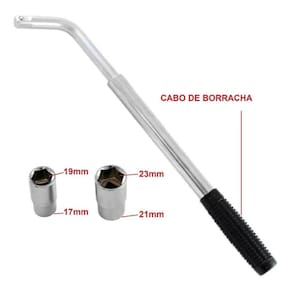 ITENS INCLUSO: 1 Chave de roda; 2 Soquetes duplos (17mm/19mm e 21mm/23mm)