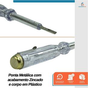 Características do produto: Material: Metal e Plástico Dimensões: 3mm de fenda x 140mm de comprimento haste e lâmina Voltagem: 100-500V Acabamento da lâmina: Zincado Peso: 24g Ref.: 3508951 Marca: Starfer Ean: 7891638066147