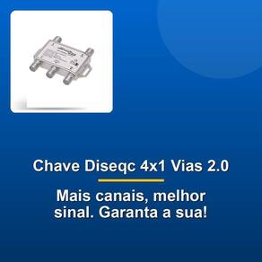 Com a Chave Diseqc 4X1 Vias 2.0, você terá acesso a quatro transponders de satélite simultaneamente, expandindo o número de canais disponíveis e proporcionando uma experiência televisiva mais rica e diversificada. A tecnologia Vias 2.0 garante maior estabilidade e desempenho, transmitindo sinais de alta qualidade sem interrupções ou interferências.