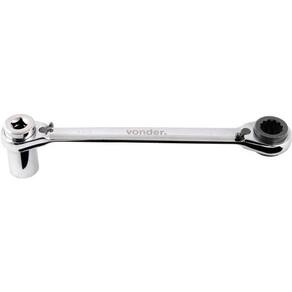 Aplicações e dicas de uso Produzida em aço cromo vanádio, proporcionando maior resistência e durabilidade, possibilita o trabalho com uma grande variedade de medidas com uma mesma chave. Possui sistema de catraca, que possibilita apertar e soltar parafusos e porcas sem necessidade de retirar a chave, proporcionando a realização de trabalhos com mais facilidade e agilidade. Indicada para apertar e soltar porcas e parafusos sextavados. Nunca utilizar prolongadores sobre a chave, pois isso aumentará o torque aplicado e diminuirá a vida útil da ferramenta. Uso industrial. Indicada para apertar e soltar porcas e parafusos sextavados. Chave com soquete universal que se adapta a parafusos e porcas sextavadas com medidas entre 8 mm a 19 mm. Também possui uma chave estrela com catraca de 17 mm x 19 mm. ATENÇÃO, esta ferramenta é indicada para ajustes rápidos, e não para apertos finais e desapertos iniciais.