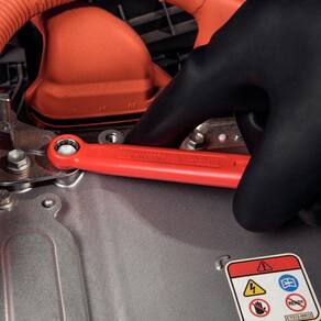 Utilizada por profissionais que trabalham em áreas de risco redes energizadas e instalações industriais . Forjada em aço cromo vanádio e temperada. Acabamento cromado.