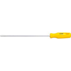 Conteúdo da embalagem1 Chave de fendaAplicações e dicas de usoIndicada para fixar e soltar parafusos com fenda simplesDestaques e diferenciaisProduzida em aço cromo vanádio, proporcionando maior resistência e durabilidade. Possui acabamento niquelado que confere maior resistência contra oxidação/corrosão. Conta com ponta magnetizada que facilita tanto a colocação quanto a retirada de parafusos em locais de difícil acesso. Cabo anatômico em polipropileno que garante maior conforto ao operador. DETALHES TÉCNICOS Largura da ponta da chave: 1/4 - 6,3 mm Comprimento da haste da chave: 10 - 254 mm Material da haste da chave: Aço cromo vanádio Acabamento da haste da chave: Niquelado Material do cabo da chave: Polipropileno Cor do cabo da chave: Amarelo Marca: Não Informado Ean: 7893946070984