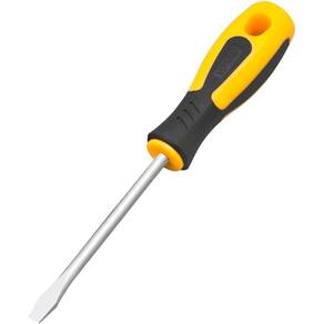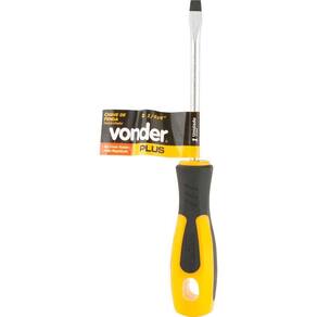 Conteúdo da embalagem1 Chave de fendaAplicações e dicas de usoIndicada para fixar e soltar parafusos com fenda simplesDestaques e diferenciaisProduzida em aço cromo vanádio, proporcionando maior resistência e durabilidade. Possui acabamento niquelado que oferece maior resistência contra oxidação/corrosão. Conta com ponta magnetizada que facilita tanto a colocação quanto a retirada de parafusos em locais de difícil acesso. Cabo anatômico em polipropileno revestido com borracha termoplástica que garante maior conforto ao operador. DETALHES TÉCNICOS Largura da ponta da chave: 1/4 - 6,3 mm Comprimento da haste da chave: 4 - 101 mm Material da haste da chave: Aço cromo vanádio Acabamento da haste da chave: Niquelado Material do cabo da chave: Polipropileno revestido com borracha termoplástica Cor do cabo da chave: Preto e amarelo Marca: Não Informado
