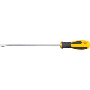 Conteúdo da embalagem1 Chave de fendaAplicações e dicas de usoIndicada para fixar e soltar parafusos com fenda simplesDestaques e diferenciaisProduzida em aço cromo vanádio, proporcionando maior resistência e durabilidade. Possui acabamento niquelado que oferece maior resistência contra oxidação/corrosão. Conta com ponta magnetizada que facilita tanto a colocação quanto a retirada de parafusos em locais de difícil acesso. Cabo anatômico em polipropileno revestido com borracha termoplástica que garante maior conforto ao operador. DETALHES TÉCNICOS Largura da ponta da chave: 1/4 - 6,3 mm Comprimento da haste da chave: 8 - 203 mm Material da haste da chave: Aço cromo vanádio Acabamento da haste da chave: Niquelado Material do cabo da chave: Polipropileno revestido com borracha termoplástica Cor do cabo da chave: Preto e amarelo Marca: Não Informado