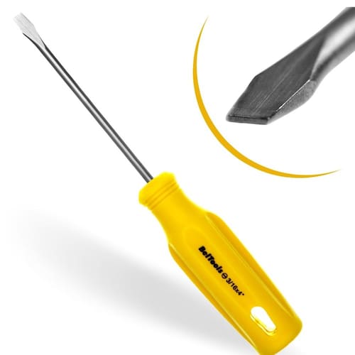 Produzida em aço cromo vanádio, proporcionando maior resistência e durabilidade. Possui acabamento niquelado que confere maior resistência contra oxidação/corrosão. Conta com ponta magnetizada que facilita tanto a colocação quanto a retirada de parafusos em locais de difícil acesso. Cabo anatômico em polipropileno que garante maior conforto ao operador.
