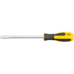 Conteúdo da embalagem1 Chave de fendaAplicações e dicas de usoIndicada para fixar e soltar parafusos com fenda simplesDestaques e diferenciaisProduzida em aço cromo vanádio, proporcionando maior resistência e durabilidade. Possui acabamento niquelado que oferece maior resistência contra oxidação/corrosão. Conta com ponta magnetizada que facilita tanto a colocação quanto a retirada de parafusos em locais de difícil acesso. Cabo anatômico em polipropileno revestido com borracha termoplástica que garante maior conforto ao operador. DETALHES TÉCNICOS Largura da ponta da chave: 3/8 - 9,5 mm Comprimento da haste da chave: 6 - 152 mm Material da haste da chave: Aço cromo vanádio Acabamento da haste da chave: Niquelado Material do cabo da chave: Polipropileno revestido com borracha termoplástica Cor do cabo da chave: Preto e amarelo Marca: Não Informado