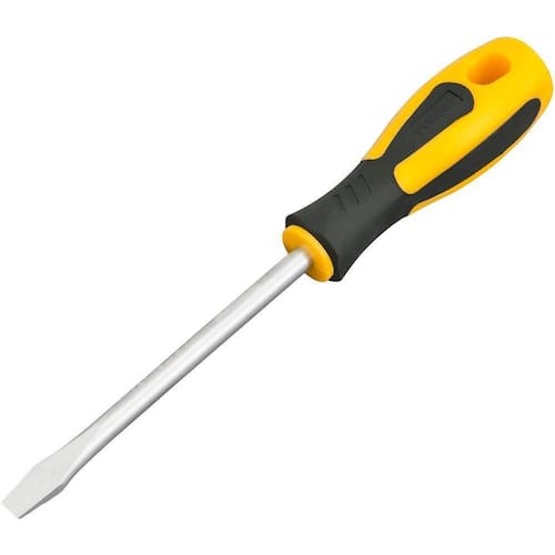 Conteúdo da embalagem1 Chave de fendaAplicações e dicas de usoIndicada para fixar e soltar parafusos com fenda simplesDestaques e diferenciaisProduzida em aço cromo vanádio, proporcionando maior resistência e durabilidade. Possui acabamento niquelado que oferece maior resistência contra oxidação/corrosão. Conta com ponta magnetizada que facilita tanto a colocação quanto a retirada de parafusos em locais de difícil acesso. Cabo anatômico em polipropileno revestido com borracha termoplástica que garante maior conforto ao operador. DETALHES TÉCNICOS Largura da ponta da chave: 5/16 - 7,9 mm Comprimento da haste da chave: 5 - 127 mm Material da haste da chave: Aço cromo vanádio Acabamento da haste da chave: Niquelado Material do cabo da chave: Polipropileno revestido com borracha termoplástica Cor do cabo da chave: Preto e amarelo
