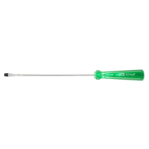 Indicada para fixar e soltar parafusos com fenda simples. Produzida em aço cromo vanádio, proporcionando maior resistência e durabilidade. Possui acabamento niquelado que confere maior resistência contra oxidação/corrosão. Conta com a ponta imantada (magnetizada) que facilita tanto a colocação quanto a retirada de parafusos em locais de difícil acesso. Cabo anatômico em polipropileno que garante maior conforto ao operador.
