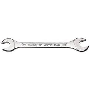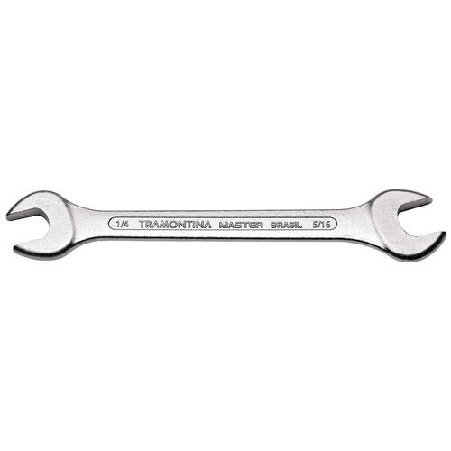 Aperte ou afrouxe parafusos e porcas com eficiência e praticidade, para isso, utilize a Chave Fixa 1/4x5/16 polegadas Tramontina com Corpo em Aço Especial Cromado. A chave é produzida em aço especial e temperado, o que garante mais resistência e durabilidade ao material. Suas atividades muito mais facilitadas é com a Tramontina! Orientações Corpo forjado em aço especial e temperado.Acabamento cromado.Abertura das bocas calibradas.O teste de dureza é realizado em vários pontos para assegurar a resistência ao desgaste da chave durante o uso ininterrupto. As aberturas das bocas das chaves de aperto são verificadas com gabaritos calibrados, o que garante seu perfeito acoplamento nos parafusos.Alguns tipos de chaves de aperto são fornecidos em bitolas métricas e em polegadas, para o uso nos diversos fixadores disponíveis.As ferramentas são produzidas e testadas conforme normas específicas. Observações Use óculos, luvas e outros equipamentos de proteção de acordo com a tarefa a ser executada. Não golpeie as chaves, a não ser que sejam projetadas para este fim. Sempre utilize uma chave de bitola correta para cada parafuso ou porca para que não haja folga, pois isso danifica a chave e o parafuso. Mantenha a chave limpa para um melhor agarre, pois usá-la suja com graxa ou óleo pode causar acidentes. Não use tubos ou extensões para obter mais torque. Não altere a forma original das chaves. Armazene em local limpo e seco. Características Gerais EAN13 7891114008906 DUN14 17891114008903 NCM 8204.11.00 Peso Líquido 0,0300 kg. Peso Bruto 0,0300 kg. Metragem 0,000208 m³. Dimensões Embalagem (Compr. X Larg. X Alt.) 208x 50x 20 mm. Dimensões Produto (Compr. X Larg. X Alt.) 127x 18x 4 mm. Dimensão Extra A 3,7 mm. Dimensão Extra B 127,0 mm. Dimensão Extra C 18,5 mm.