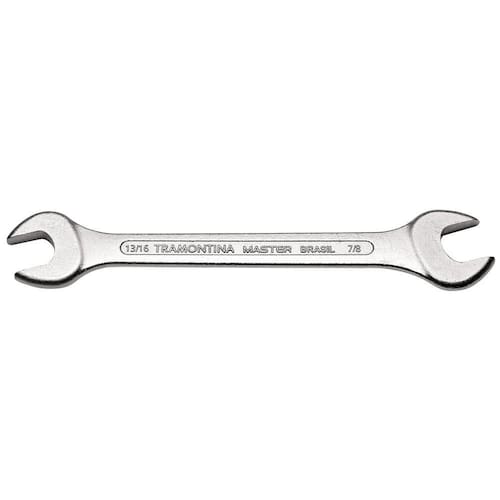 Deixe suas atividades mais práticas com a Chave Fixa 13/16x7/8 polegadas Tramontina com Corpo em Aço Especial Cromado. A peça possui corpo em aço especial cromado e oferece resistência e durabilidade para que você realize com mais eficiência as suas atividades. Qualidade é com a Tramontina! Orientações Corpo forjado em aço especial e temperado.Acabamento cromado.Abertura das bocas calibradas.O teste de dureza é realizado em vários pontos para assegurar a resistência ao desgaste da chave durante o uso ininterrupto. As aberturas das bocas das chaves de aperto são verificadas com gabaritos calibrados, o que garante seu perfeito acoplamento nos parafusos.Alguns tipos de chaves de aperto são fornecidos em bitolas métricas e em polegadas, para o uso nos diversos fixadores disponíveis.As ferramentas são produzidas e testadas conforme normas específicas. Observações Use óculos, luvas e outros equipamentos de proteção de acordo com a tarefa a ser executada. Não golpeie as chaves, a não ser que sejam projetadas para este fim. Sempre utilize uma chave de bitola correta para cada parafuso ou porca para que não haja folga, pois isso danifica a chave e o parafuso. Mantenha a chave limpa para um melhor agarre, pois usá-la suja com graxa ou óleo pode causar acidentes. Não use tubos ou extensões para obter mais torque. Não altere a forma original das chaves. Armazene em local limpo e seco. Características Gerais EAN13 7891114008951 DUN14 17891114008958 NCM 8204.11.00 Peso Líquido 0,2200 kg. Peso Bruto 0,2200 kg. Metragem 0,000294 m³. Dimensões Embalagem (Compr. X Larg. X Alt.) 280x 70x 15 mm. Dimensões Produto (Compr. X Larg. X Alt.) 225x 50x 8 mm. Dimensão Extra A 8,0 mm. Dimensão Extra B 225,0 mm. Dimensão Extra C 50,0 mm.