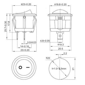 Chave gangorra KCD1-105-101 - Diversas aplicações, utilizada em eletrônica / elétrica - componentes elétricos. - 10 unidades - 2 Polos Preta - Capacidade: 6A em 250 volts AC / 10A em 125 volts AC.