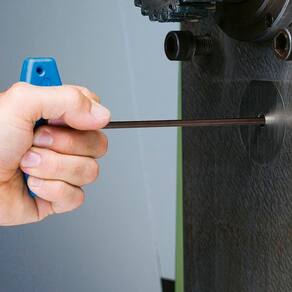Haste em aço Gedore-Molibdênio-Vanadium e cabo em polímero na cor azul padrão Gedore. Haste com acabamento escurecido. Cabo ergonômico em formato T, que facilita ao usuário os movimentos manuais de aperto e desaperto. Chave para parafusos com perfil hexalobular interno.