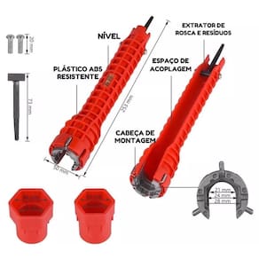 Chave Hidráulica Multifuncional 8 em 1 é a ferramenta perfeita para quem precisa de uma solução completa para instalações e reparos hidráulicos, tais como: pias, tubos, vasos, torneiras, válvulas, caixas acopladas, registros, chuveiros, aquecedores, etc. Com ela, você pode realizar diferentes tipos de reparos e instalações impecáveis em segundos de forma prática e rápida.