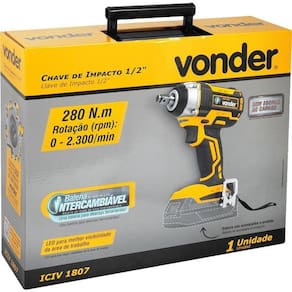 Este equipamento utiliza um modelo de bateria que pode ser intercambiável (não acompanha), ou seja, uma bateria que é compatível com outros modelos de ferramentas a bateria VONDER. Por isso, em sua próxima compra de ferramenta a bateria VONDER, procure um modelo que comece com a referência ?I?, ou que esteja identificado com o selo ?Bateria Intercambiável VONDER?. Desta forma, você garante modelos mais econômicos, sem a necessidade de aquisição de novas baterias e carregadores para uso em seu equipamento. Possui LED para melhorar a visibilidade do local de trabalho, cabo com revestimento emborrachado proporcionando maior conforto no manuseio e motor tipo Brushless (sem escova), que garante maior durabilidade