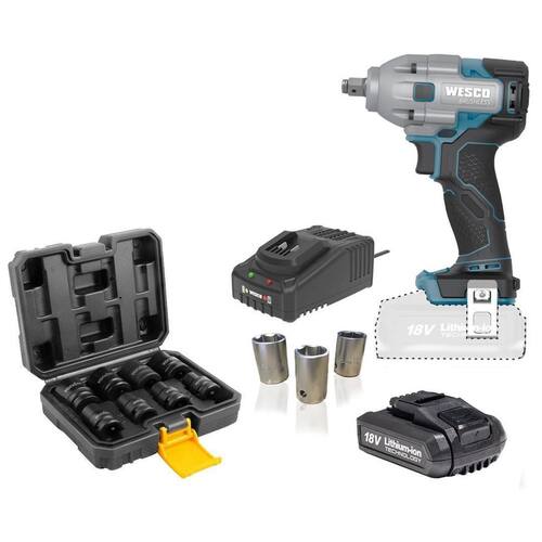 Chave impacto 18v wesco ws2407 brush + jogo soquetes 8 pçs Chave de impacto wesco, modelo ws2407, com bateria, carregador E jogo de soquetes de 8 peças Chave de impacto 18v com motor brushless de 1/2 - 350 nm Excelente performance e custo-benefício. Dados técnicos Motor brushless; Mandril de 1/2 quadrado; Velocidade variável e reversível; Carcaça de engrenagem de alumínio; 3 velocidades com deslig. Automático; Luz led. Tipo de bateria: 18v; Rotação: 0-900/2.400/3.000 rpm; Impactos por minuto: 0-1.200/3.300/4.000 ipm; Torque máximo: 350 nm; Tamanho do mandril: 1/2 quadrado; Voltagem: bivolt; Tempo de carregamento: 1h; Peso: 1,1 kg Itens que acompanham a máquina: -01 bateria de 18v com 2.0 ah; -01 carregador - bivolt; -03 soquetes de 17mm, 19mm e 21mm ; -01 clip de cinto; -01 jogo de soquetes com 8 peças: Jogo de soquetes de impacto sextavados, Encaixe de 1/2, 10,0 mm a 24,0 mm, com 8 peças, Vonder30.61.008.012 Conteúdo da embalagem: 1 jogo de soquetes composto por 8 peças, sendo: soquetes sextavado 1/2 10,0 mm, 12,0 mm, 13,0 mm, 14,0 mm, 17,0 mm, 19,0 mm, 21,0 mm, 24,0 mm . Acompanha maleta plástica. Produzido em aço cromo molibdênio, que confere maior resistência e durabilidade, e acabamento fosfatizado, proporcionando maior resistência à oxidação/corrosão. Indicado para apertar e soltar porcas e parafusos sextavados. Utilizado em chaves de impacto pneumáticas e elétricas. legal: 90 dias